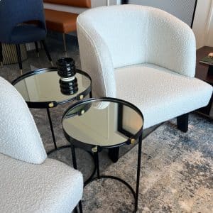 – Chic Design: The sleek mirror tabletops combined with the luxurious black and gold metal frames create a stylish and timeless look.