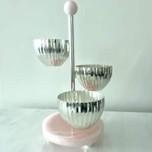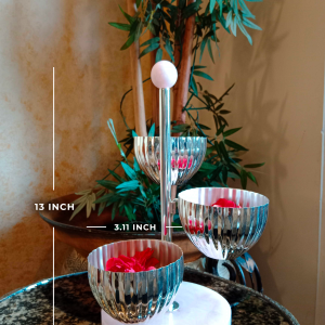 A Tulip Nut Bowl Stand is a charming and functional tabletop accessory that combines elegant design with practicality. It typically consists of a stand or holder fashioned in the shape of a tulip, with one or multiple small bowls or dishes attached to it. This stand is specifically designed for serving nuts or other snacks, adding a touch of sophistication to your dining or entertaining experience.